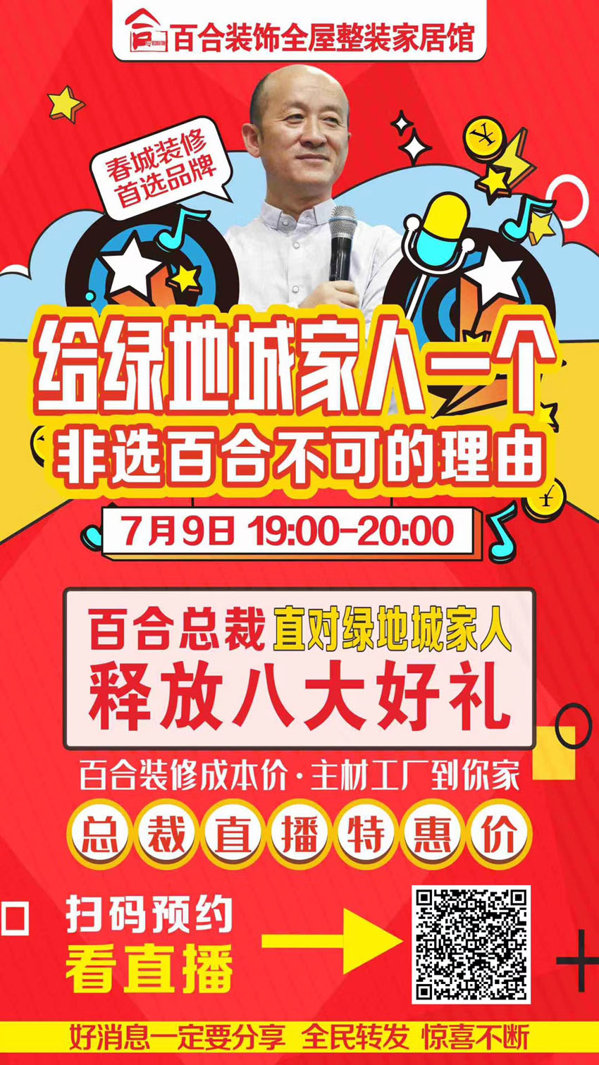 7月9號(hào)百合裝飾 總裁直播 綠地城小區(qū)專場(chǎng)福利團(tuán)